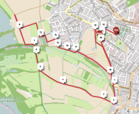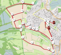 Start der ca. 3 km langen Schleife ist auf der Rohrhofer Straße Höhe Ev. Gemeindezentrum. Die Strecke führt über die Wanderwege Brühler Pfad und Leinpfad und durch die Unterführung in die Ormessonstraße, wo sich auf Höhe der Schillerschule das Ziel befindet.